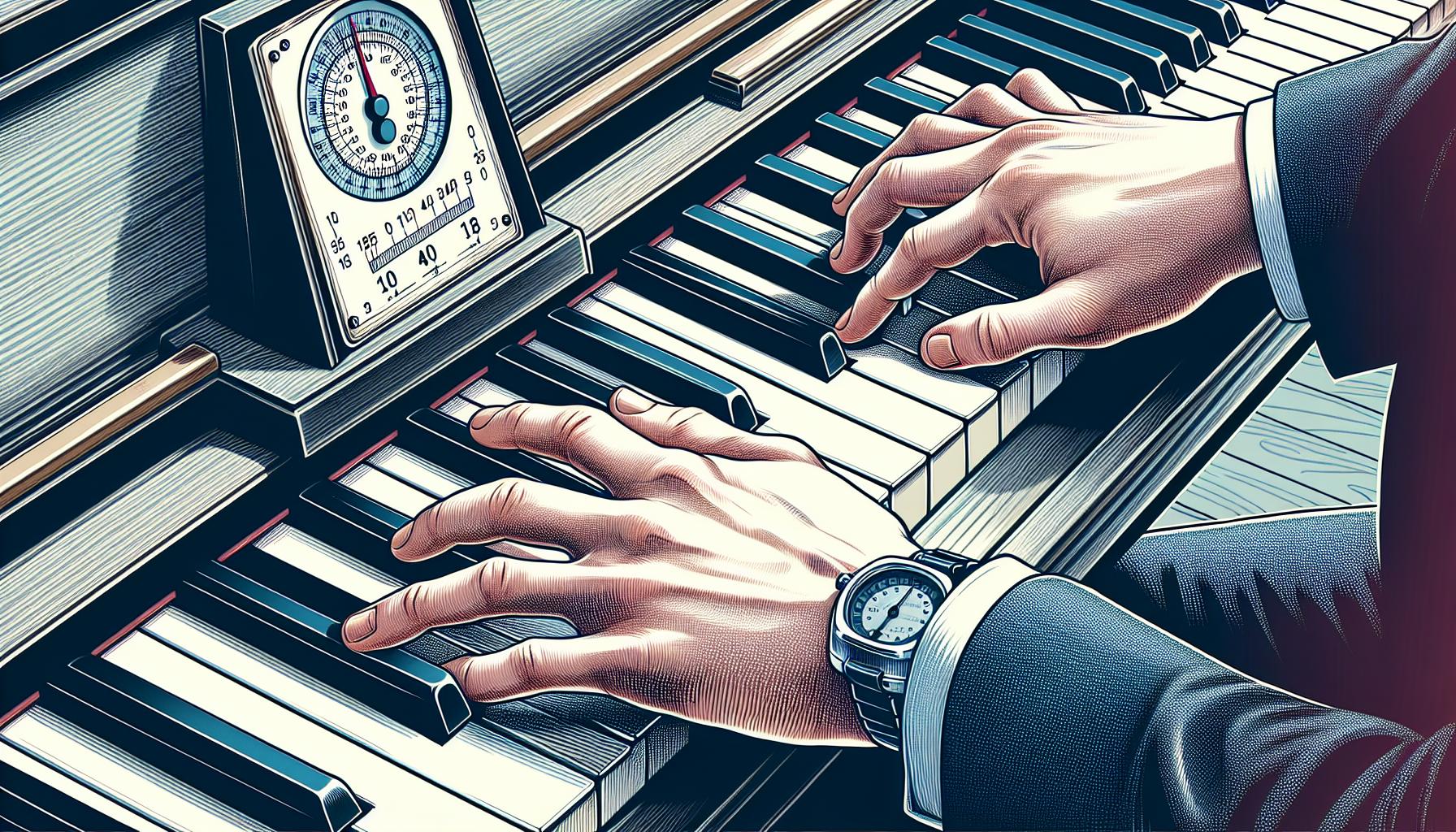 During slow practice sessions, it’s beneficial for pianists to use a metronome. This tool ensures a consistent tempo, providing a steady framework to work within. Starting below the target speed, pianists can incrementally increase the metronome’s pace as they become more comfortable and confident with the passage. This gradual acceleration helps bridge the gap between slow, deliberate practice and full-speed performance without sacrificing accuracy or technique.